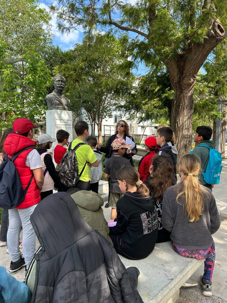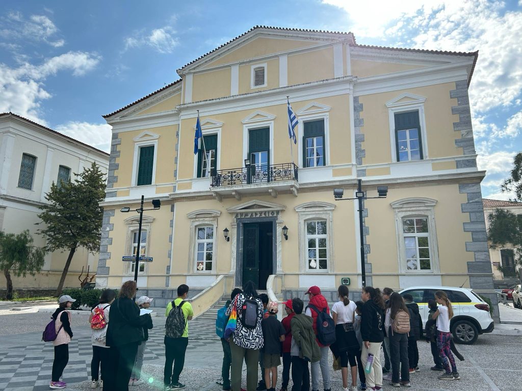 Η διαδρομή συνεχίστηκε προς το Επικούρειο Ίδρυμα, το Αρχαιολογικό Μουσείο, το Δημαρχιακό Μέγαρο και τον Ηγεμονικό Κήπο, ένα εμβληματικό σημείο της πόλης που συνδέεται άρρηκτα με την εποχή της Ηγεμονίας της Σάμου. Οι μαθητές περπάτησαν ανάμεσα σε ιστορικά κτήρια και μνημεία, που μέσα στα χρόνια άλλαξαν χρήση αλλά η ομορφιά τους μαρτυρά την ευμάρεια μιας άλλης εποχής, ενώ άκουγαν ιστορίες για τους ηγεμόνες, την τοπική διοίκηση και την πολιτική και κοινωνική ζωή του 19ου και του 20ου αιώνα.Στη συνέχεια, κατευθυνθήκαν προς την Πλατεία Εμμανουήλ Σοφούλη και την Πλατεία Πυθαγόρα.